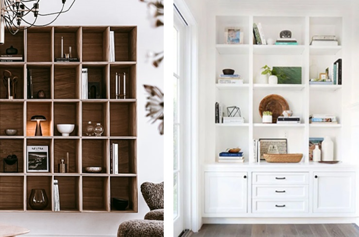 Ahşap objeler, hasır sepetler ya da bitkiler kitaplığa sıcak ve yaşanmış bir his kazandırır. Özellikle küçük saksı bitkileri, kitaplığın sert çizgilerini yumuşatarak mekânla daha uyumlu hale gelmesini sağlar. Canlı ya da kuru bitkiler tercih edilebilir.